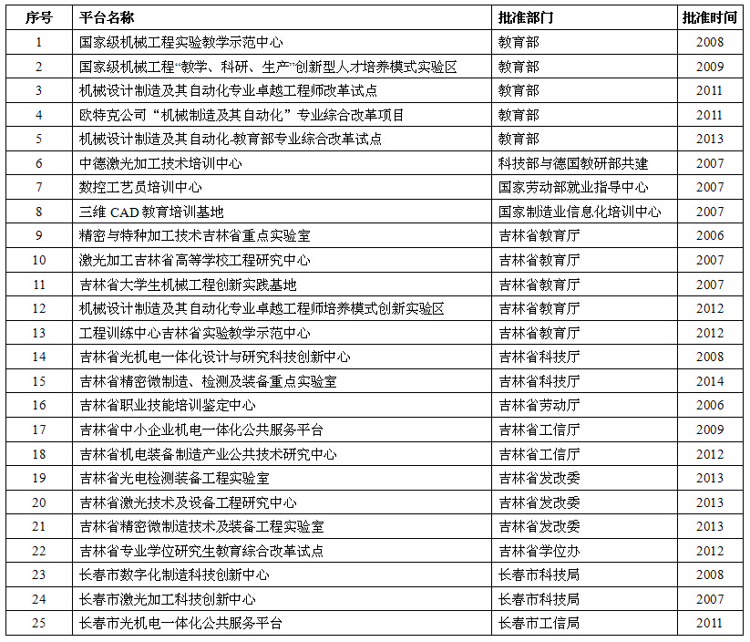 机械工程一级学科2011年被批准为吉林省“十二五”优势特色重点学科,2014年被确定为吉林省高校重中之重立项建设一级学科。